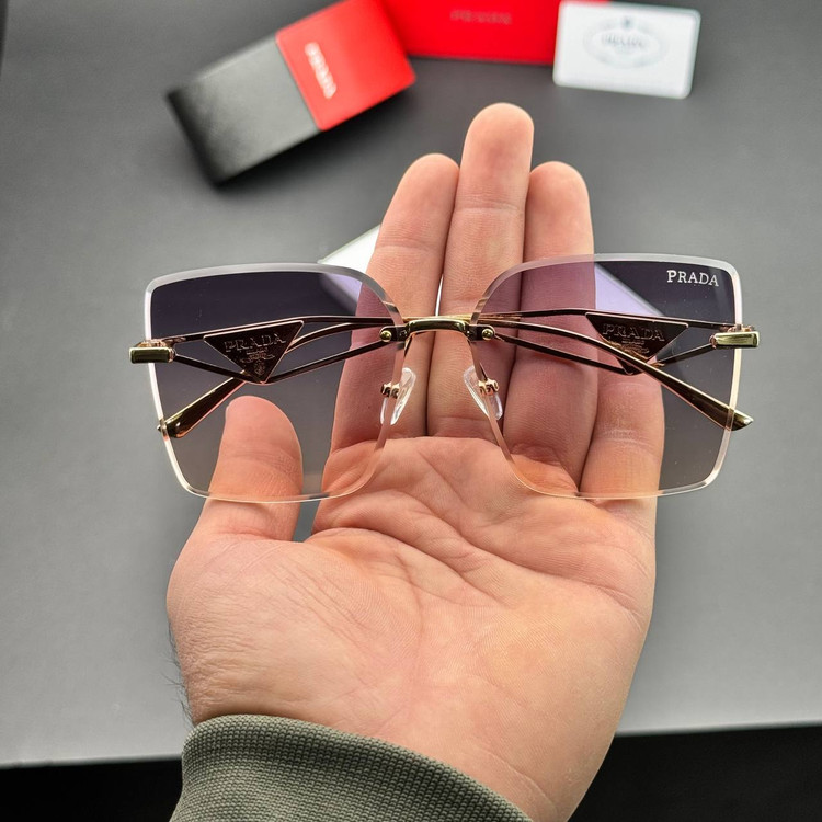 عینک افتابی زنانه برند پرادا UV400 فریم لس مناسب صورت متوسط و بزرگ